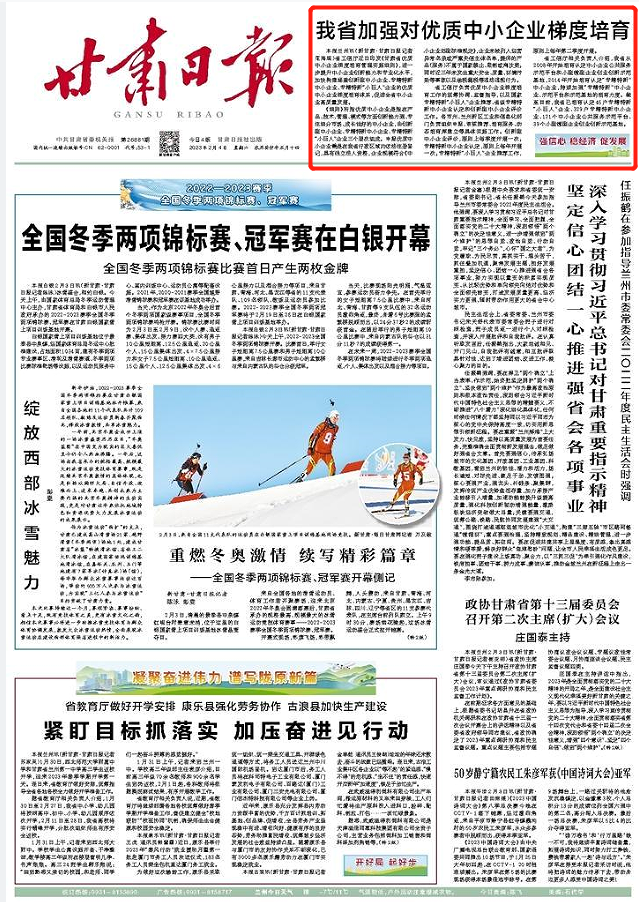 本報蘭州訊(新甘肅·甘肅日報記者 范海瑞)省工信廳近日印發(fā)《甘肅省優(yōu)質(zhì)中小企業(yè)梯度培育管理實施細(xì)則》,進(jìn)一步提升中小企業(yè)創(chuàng)新能力和專業(yè)化水平,加快構(gòu)建涵蓋創(chuàng)新型中小企業(yè)、專精特新中小企業(yè)、專精特新“小巨人”企業(yè)的優(yōu)質(zhì)中小企業(yè)梯度培育體系,促進(jìn)全省中小企業(yè)高質(zhì)量發(fā)展。